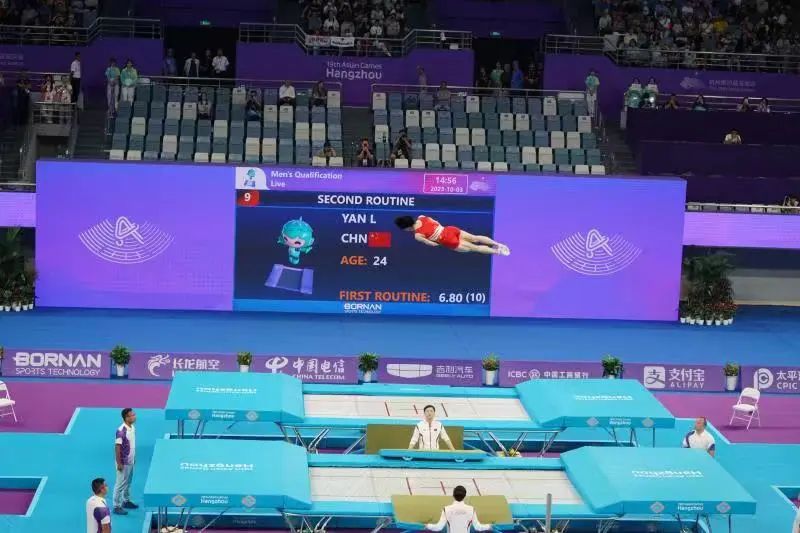 10月3日,杭州第19届亚运会蹦床比赛继续在黄龙体育中心体育馆进行。中国选手严浪宇在男子个人比赛中为中国蹦床队再添一金,至此杭州亚运会蹦床比赛圆满收官,中国队包揽了全部男女个人项目的两枚金牌。