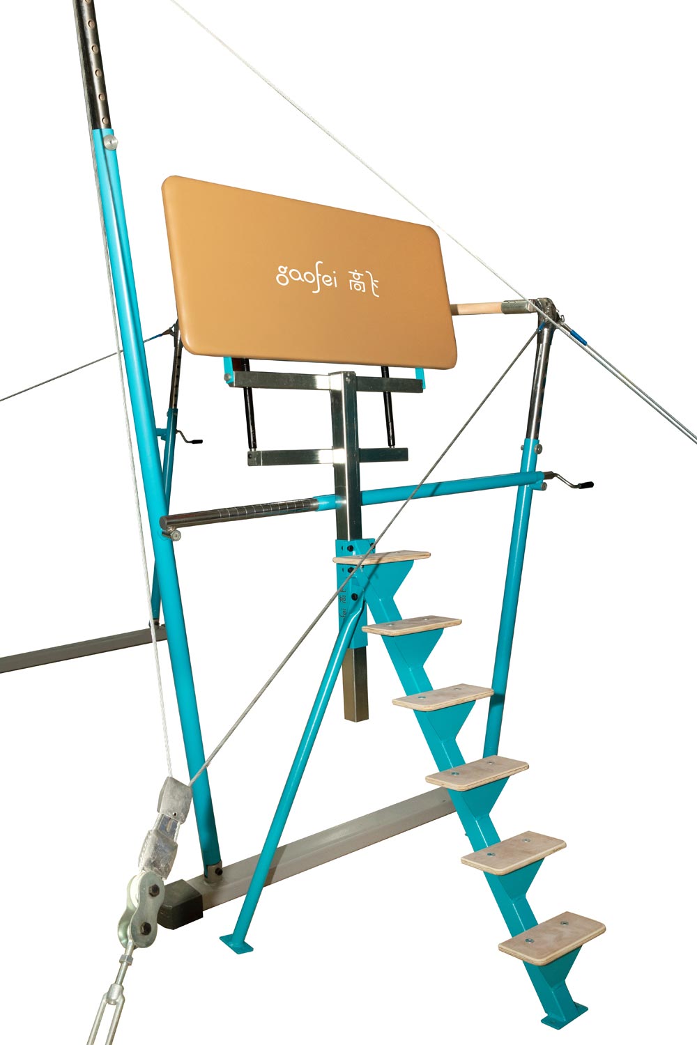 单杠训练辅助保护器材,立于单杠一侧的立柱边,配有梯子,用于教练站在上面保护用,保护凳面尺寸