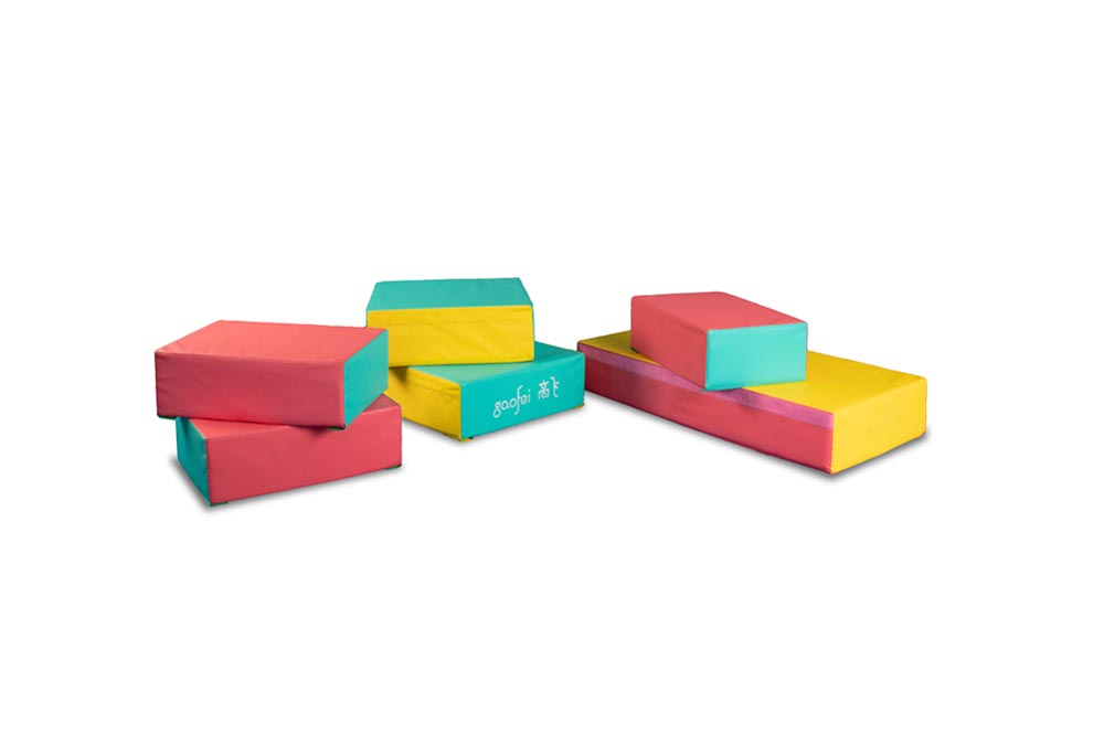 共6块。长120cm,宽60cm,高20cm一块;长60cm,宽60cm,高20cm二块;长40cm,宽60cm,高20cm三块。每块内为25倍硬质海绵,外PVC人革。